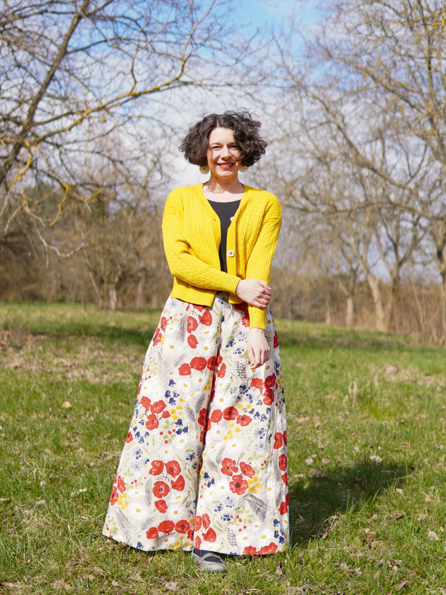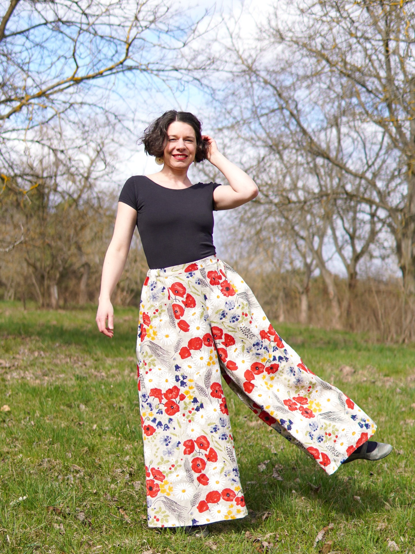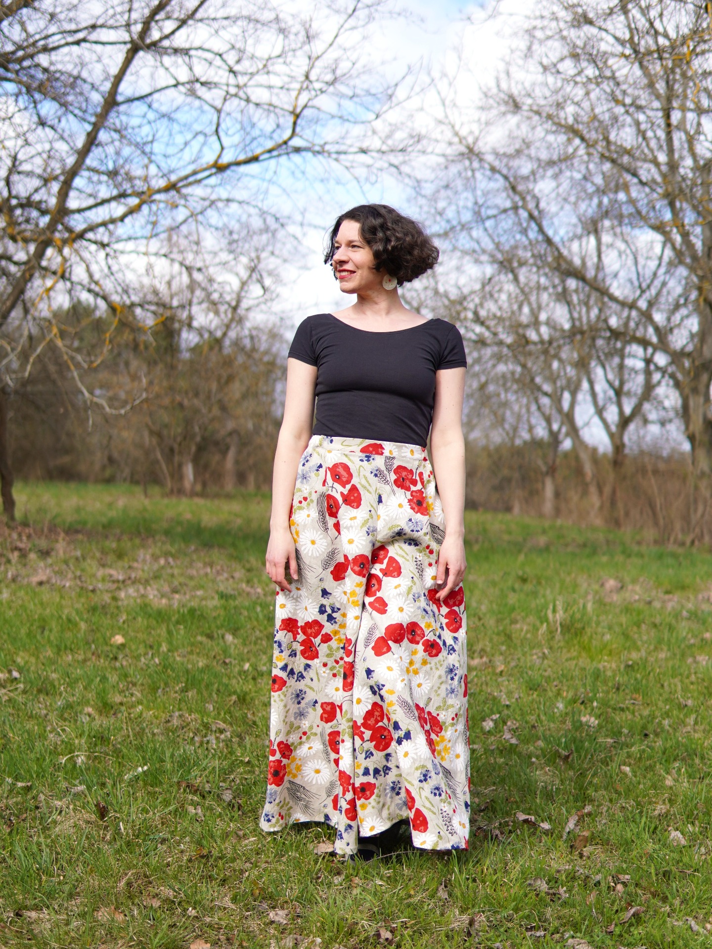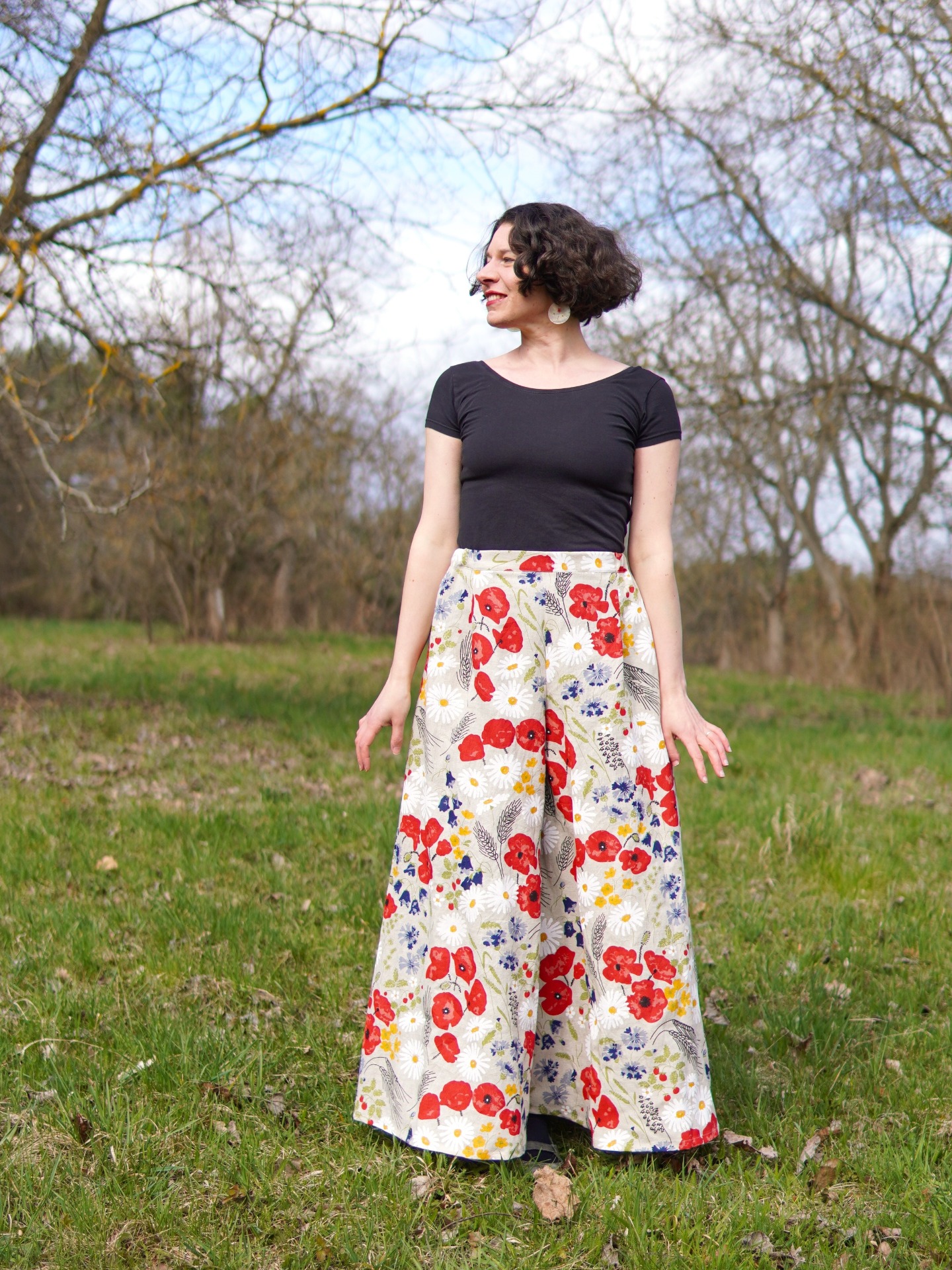 Dlouhá kalhotová sukně - luční květy