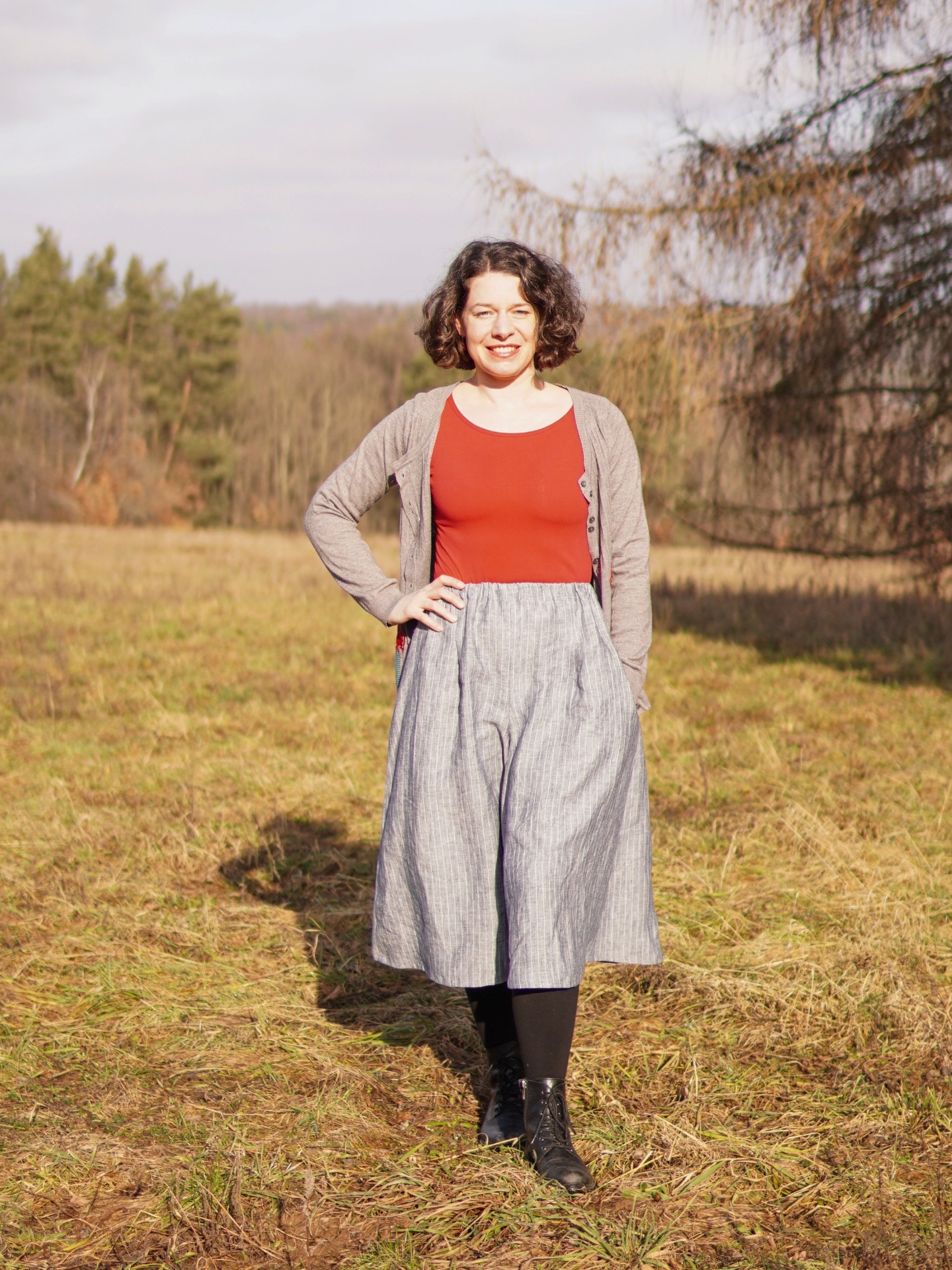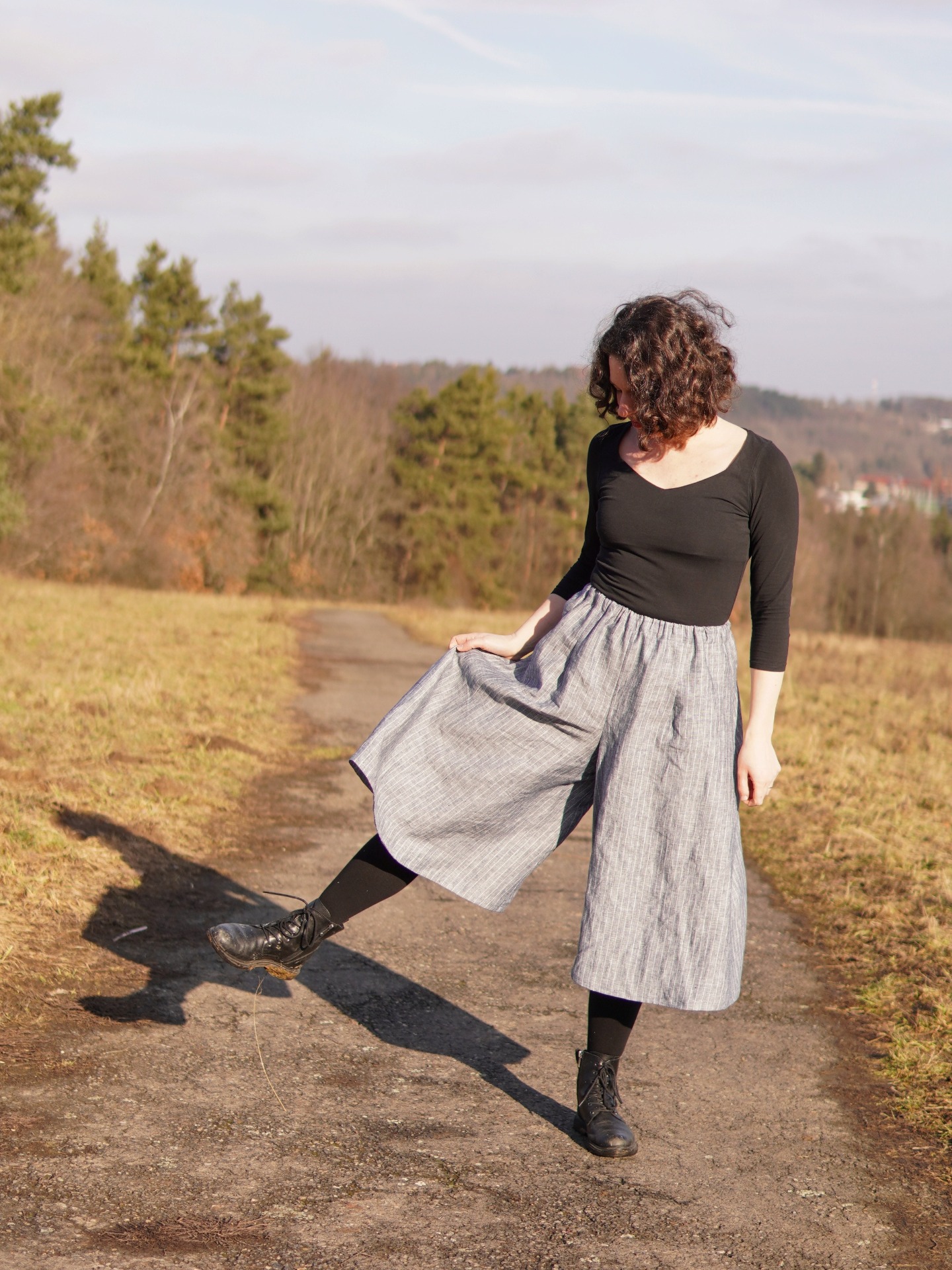 Na podzim a zimu se skvěle hodí se silonkami nebo i teplejšími punčocháči. V létě lze nosit jen tak a díky velké volnosti střihu se v ní určitě nezapotíte. Len je zkrátka skvělý celoroční materiál.
