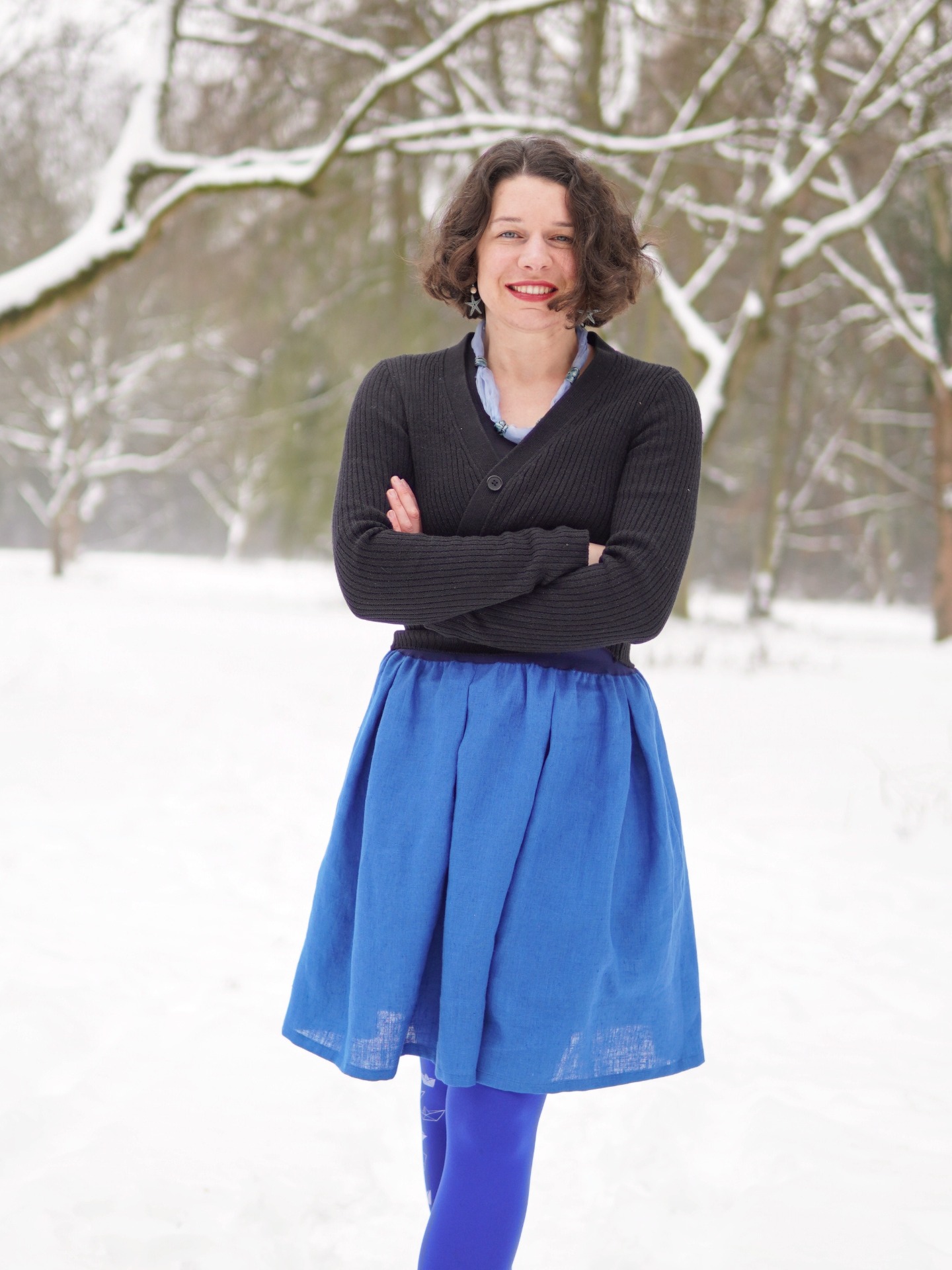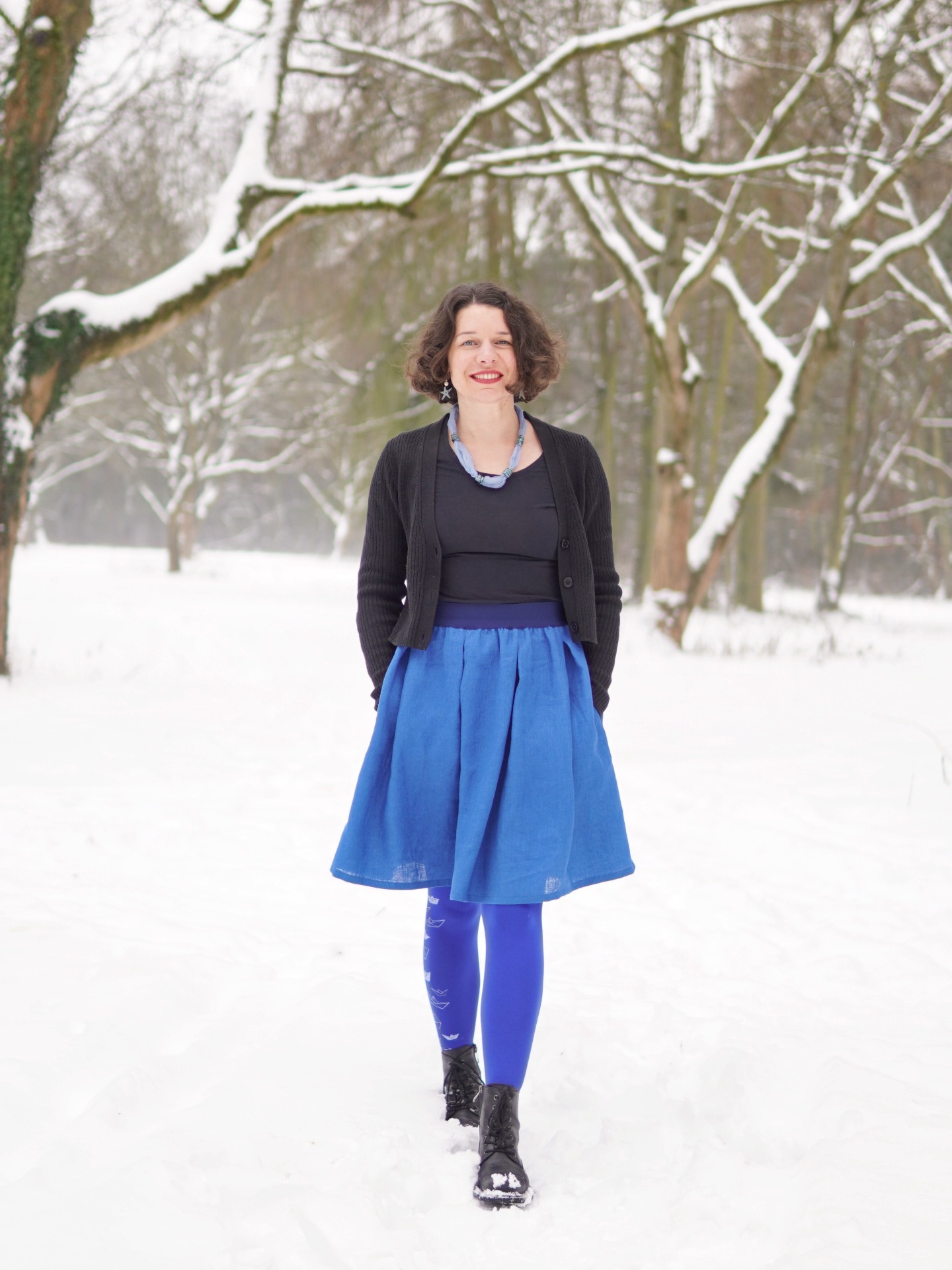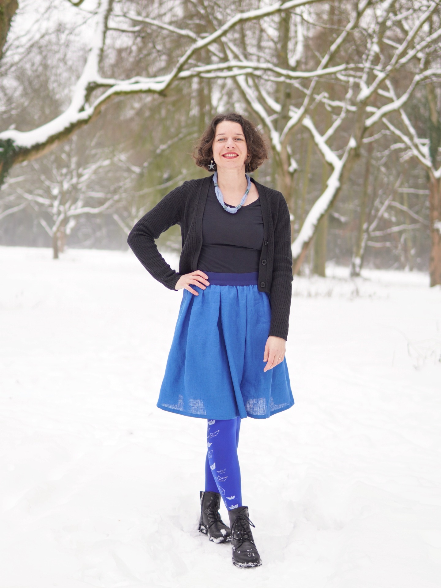 Lněná sukně s kapsami, ve které se budete cítit elegantně a zároveň velice pohodlně. Pas je všitý do širší gumy, v bočních švech jsou skryté kapsy.