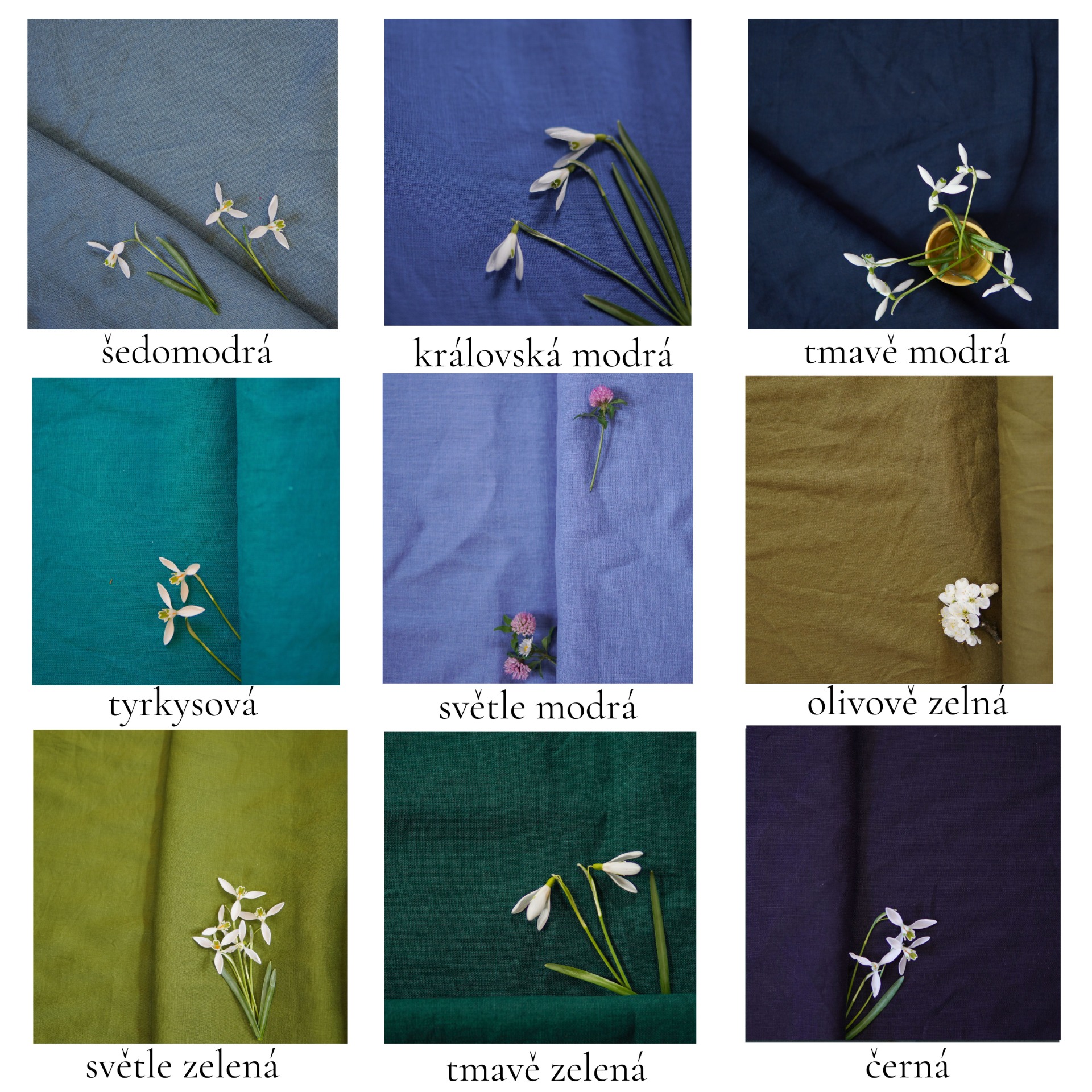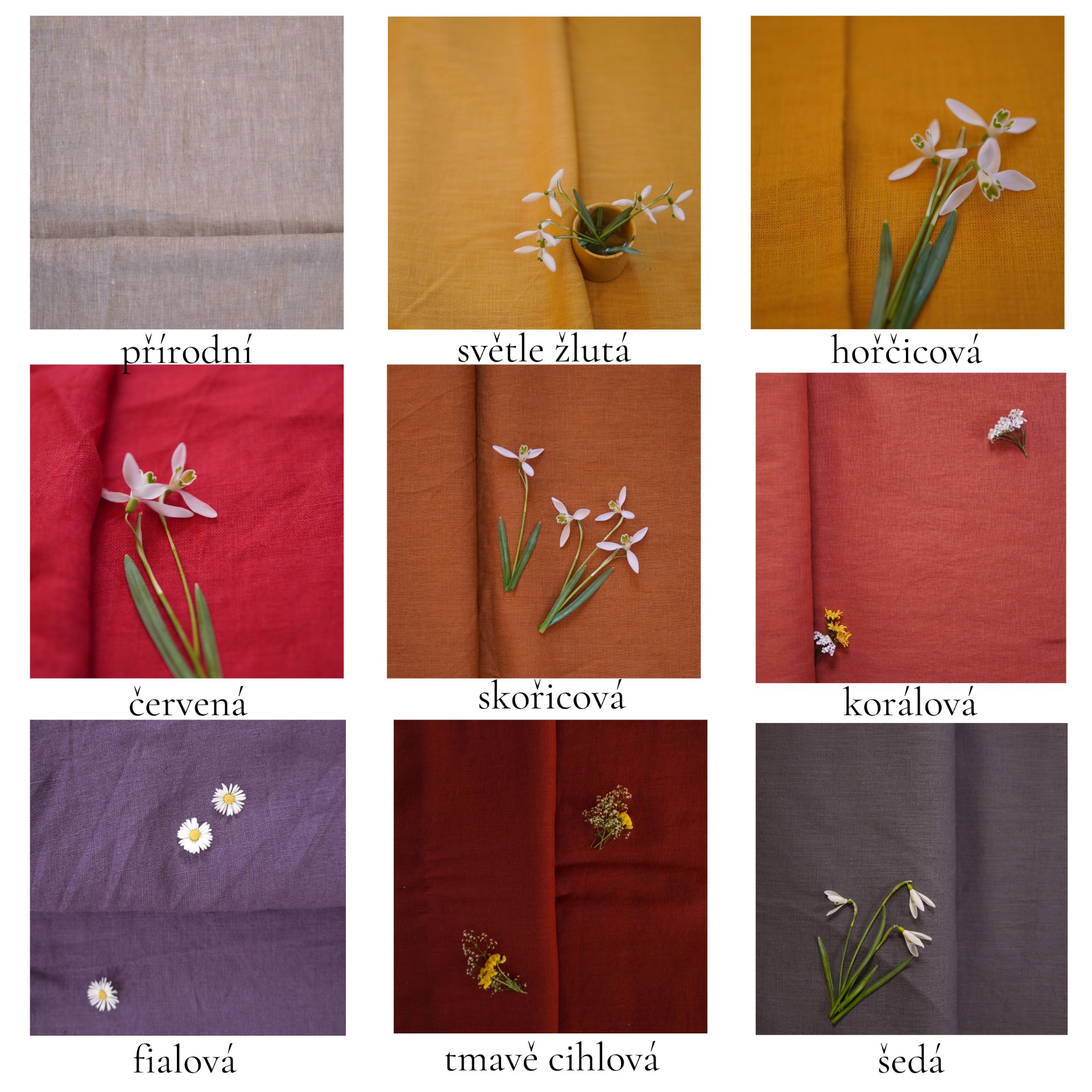 Všechny látky jsou 100% len, ale v různých tloušťkách, proto se ne všechny hodí na všechny kousky.