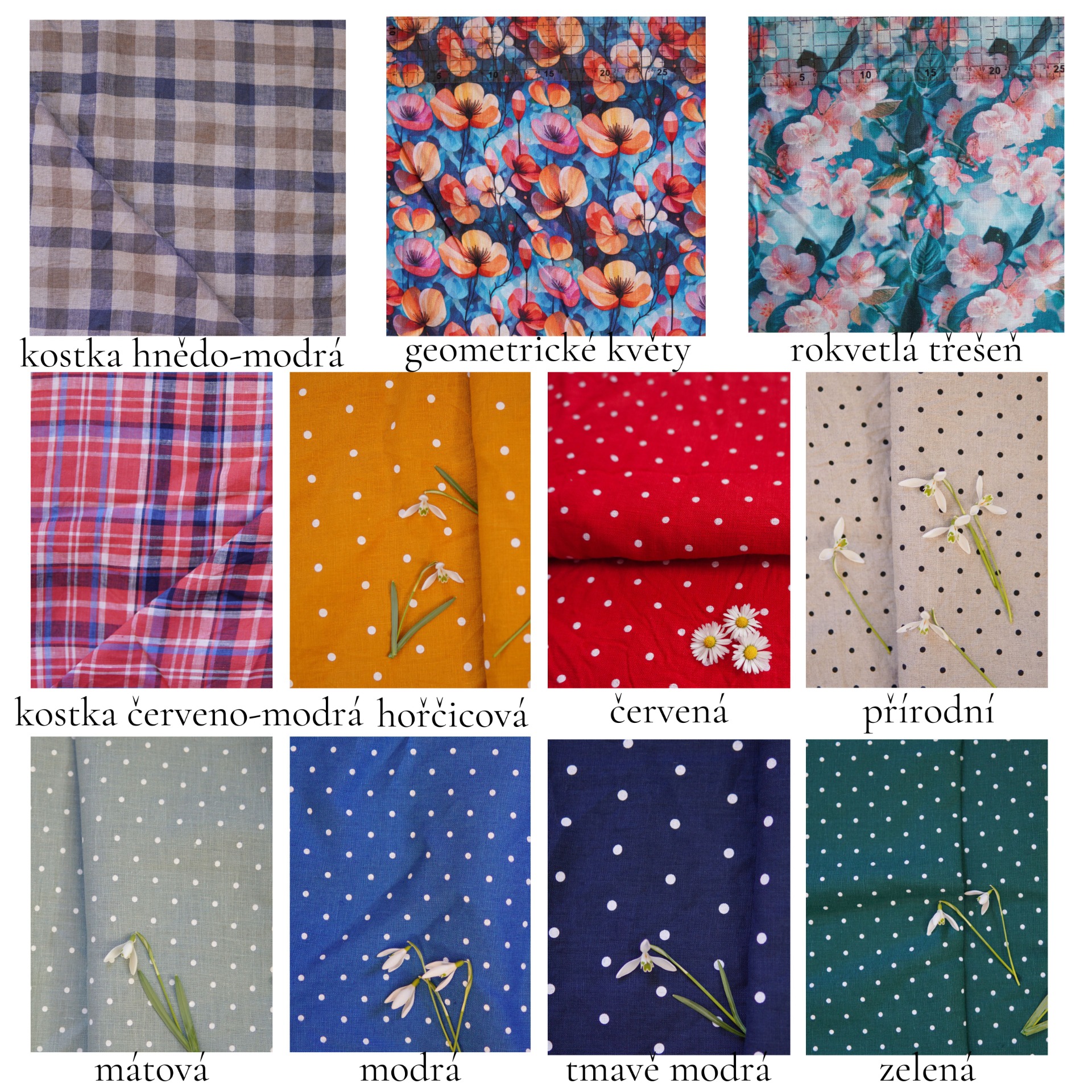 Pokud potřebujete s čímkoli poradit, neváhejte se na mě obrátit. K objednávce je také možné přiložit vzorky dalších barev, abyste mohli vybrat látky na další kousky, stačí, když napíšete do poznámky k objednávce, o které vzorky máte zájem.